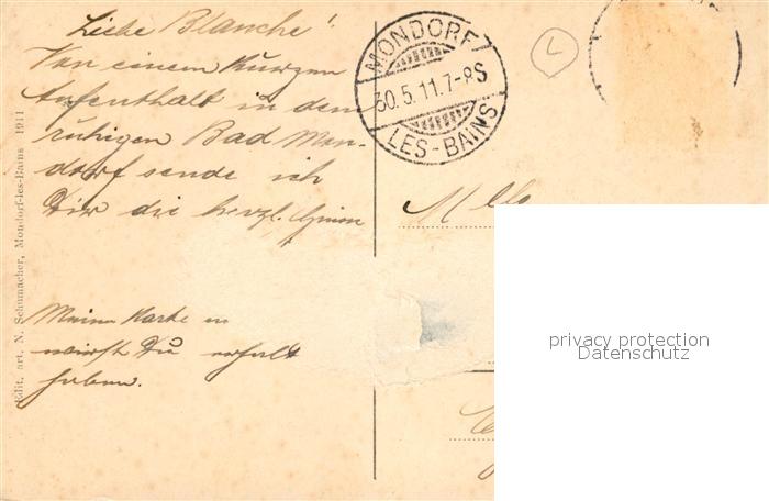 alte Postkarte Mondorf-les-Bains Salle de Concert postalisch gelaufen Erhaltung siehe scans [LiesaD40]
