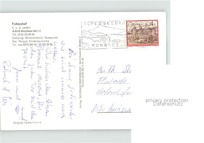 71850725 alte Postkarte Mondsee Salzkammergut Camping Fohlenhof Pferde postalisch gelaufen Erhaltung siehe scans KatCode: 11390315041715