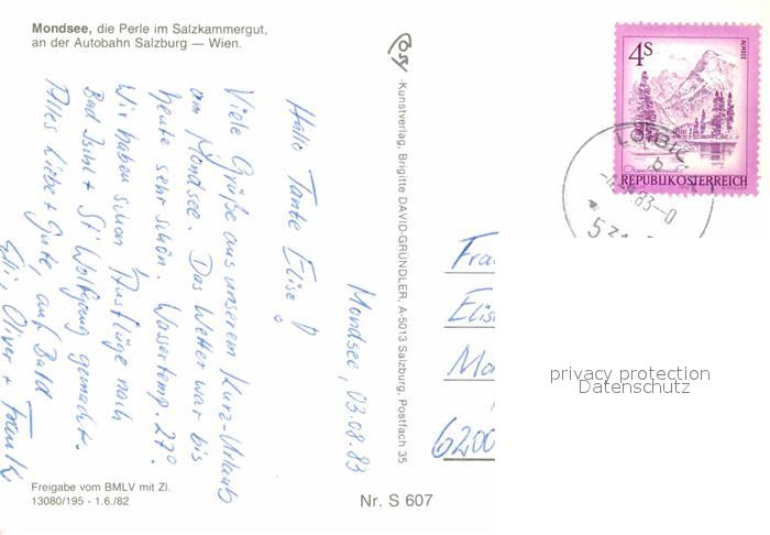 72773441 alte Postkarte Mondsee Salzkammergut Fliegeraufnahme postalisch gelaufen Erhaltung siehe scans [FriedD77] KatCode: 11390315041715