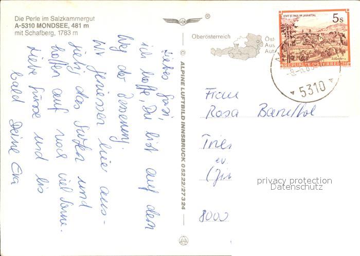 72531424 alte Postkarte Mondsee Salzkammergut Fliegeraufnahme postalisch gelaufen Erhaltung siehe scans [AndreD76 kt113box] KatCode: 11390315041715