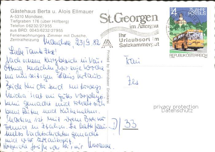 72109627 alte Postkarte Mondsee Salzkammergut Gaestehaus Ellmauer Seepanorama postalisch gelaufen Erhaltung siehe scans KatCode: 11390315041715