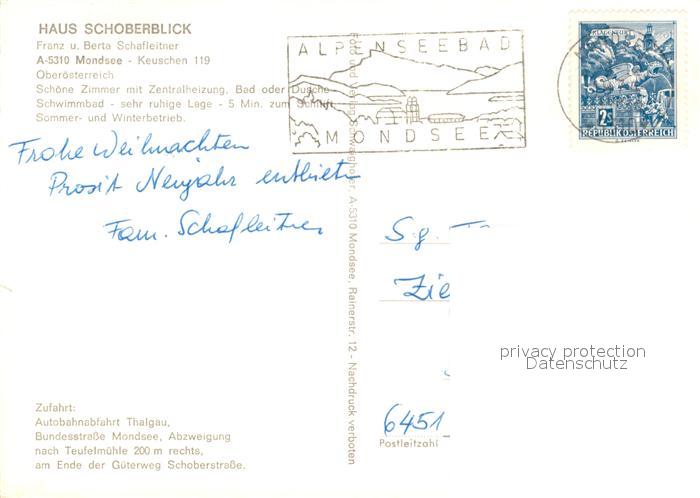 13588531 alte Postkarte Mondsee Salzkammergut Haus Schoberblick postalisch gelaufen Erhaltung siehe scans [LiesaD40] KatCode: 11390315041715