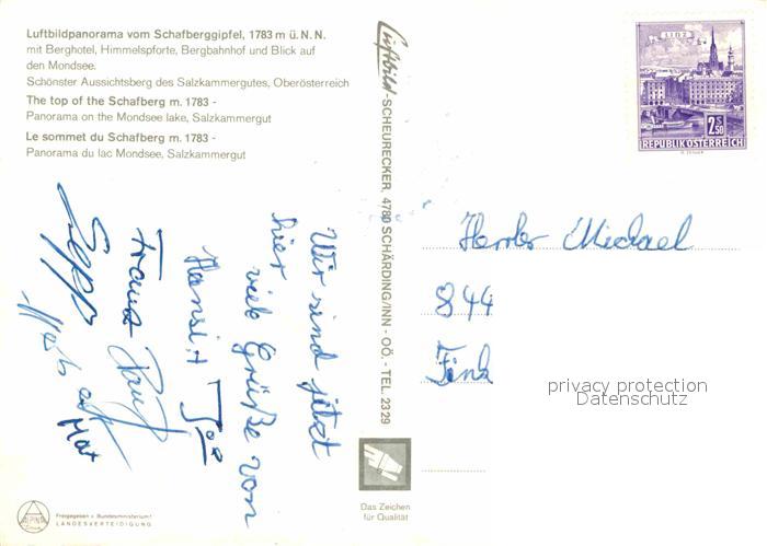 72693460 alte Postkarte Mondsee Salzkammergut Schafsberg Zellersee Luftaufnahme postalisch gelaufen Erhaltung siehe scans [KathaD79] KatCode: 11390315041715