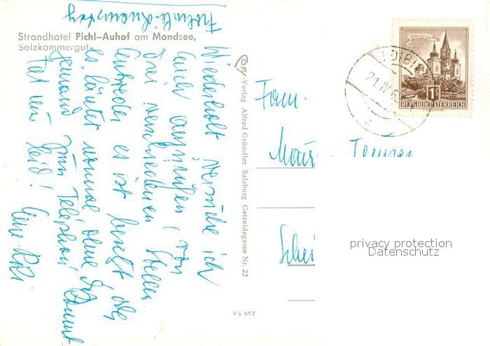 13189412 alte Postkarte Mondsee Salzkammergut Strandhotel Pichl-Auhof postalisch gelaufen Erhaltung siehe scans [PaolaD17] KatCode: 11390315041715