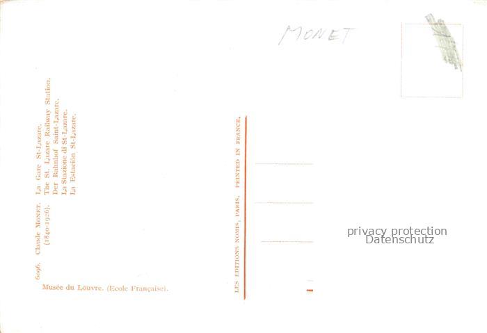 74022993 Monet Claude Kuenstlerkarte Der Bahnhof Saint Lazare postalisch nicht gelaufen Erhaltung siehe scans [IrynaD87] KatCode: 22240000003200