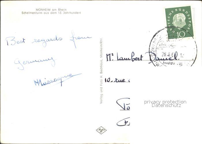72168361 alte Postkarte Monheim Rhein Schelmenturm postalisch gelaufen Erhaltung siehe scans KatCode: 11110005158026