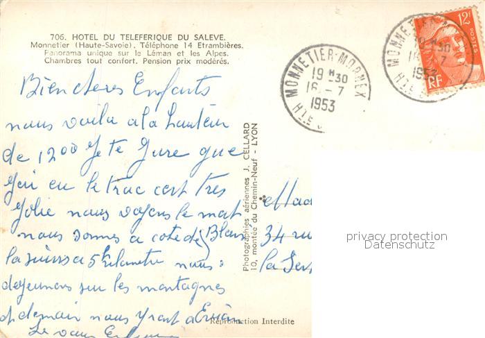 13640295 Monnetier-Mornex Hôtel du Téléférique du Saleve vue aérienne postalisch gelaufen Erhaltung siehe scans [FriedD77] carte postale Frie Katcode 11170074374185