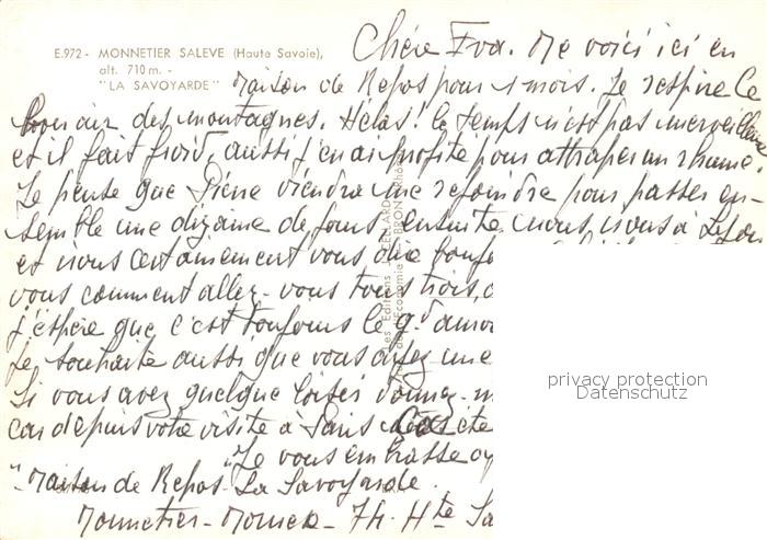 13068357 Monnetier-Mornex Hotel La Savoyarde postalisch nicht gelaufen Erhaltung siehe scans [KathaD81] KatCode: 11170074374185