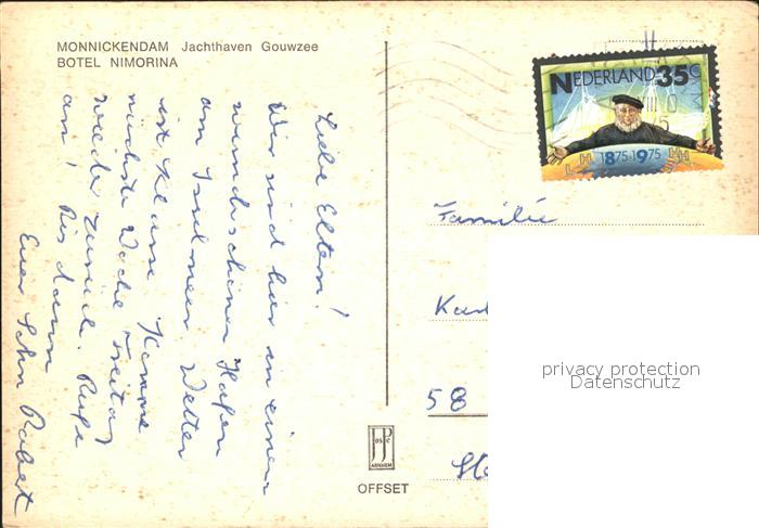 old postcard Monnickendam Jachthaven Gouwzee Botel Nimorina postalisch gelaufen Erhaltung siehe scans