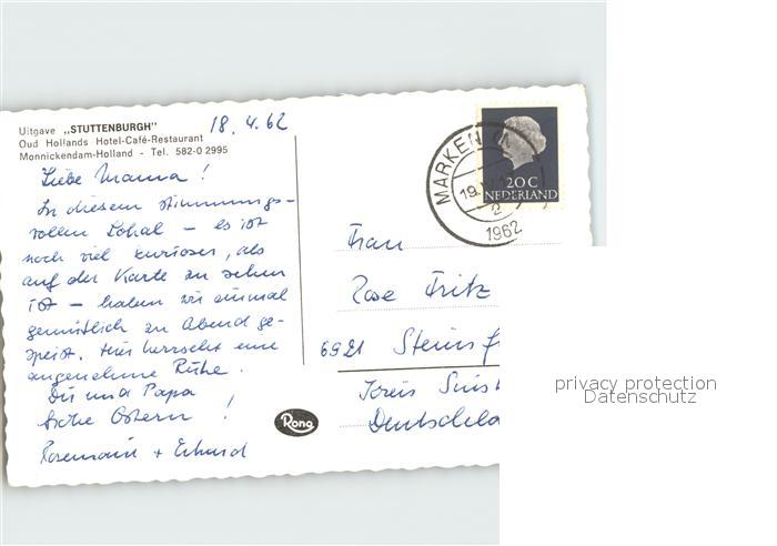 old postcard Monnickendam Uitgave Stuttenburgh Oud Hollands Hotel Cafe Restaurant postalisch gelaufen Erhaltung siehe scans