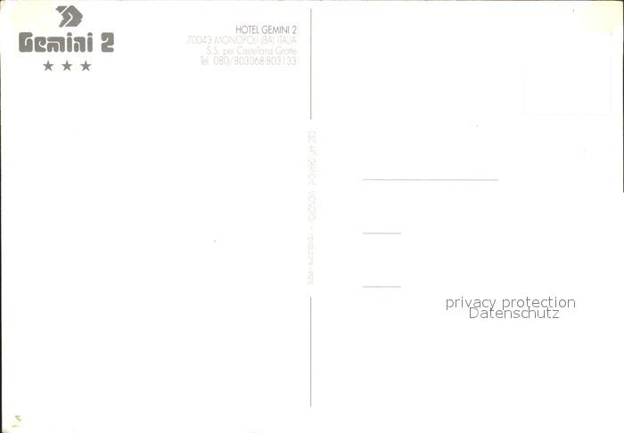 Monopoli Hotel Gemini 2 postalisch nicht gelaufen Erhaltung siehe scans