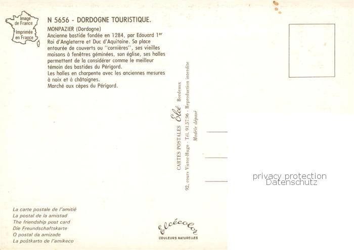 13814544 Monpazier 24 Dordogne Ancienne bastide fondee en 1284 par Edouard 1er postalisch nicht gelaufen Erhaltung siehe scans [WerneD78] Wern Katcode 11170024124280