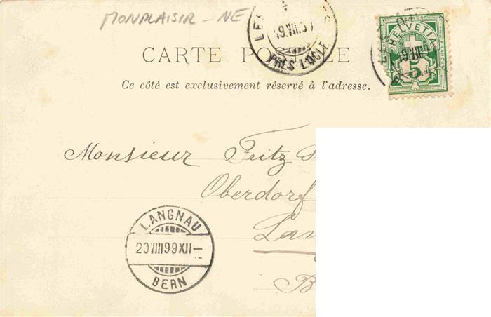 13974735 alte Postkarte Monplaisir Le Locle NE Haeuser am Waldrand postalisch gelaufen Erhaltung siehe scans [FriedD77] KatCode: 11470130415128