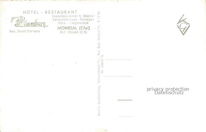 74037446 Monreal Eifel Hotel Restaurant Loewenburg Kirche Brunnen postalisch nicht gelaufen Erhaltung siehe scans [WerneD78] KatCode: 11110007137074