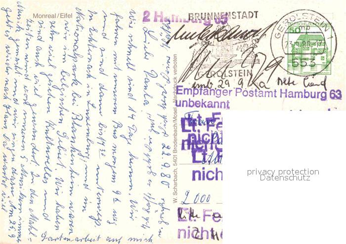 72866661 alte Postkarte Monreal Eifel Schlossruine postalisch gelaufen Erhaltung siehe scans [NatalD47] KatCode: 11110007137074