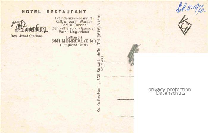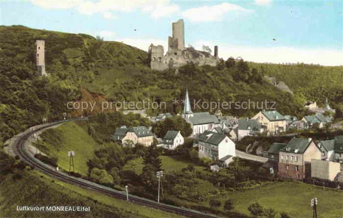 74130732 Monreal Eifel Teilansicht Luftkurort Eisenbahn Burgruine Loewenburg postalisch nicht gelaufen Erhaltung siehe scans [FriedD77] KatCode: 11110007137074