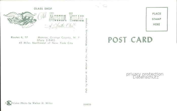 72306057 Monroe New York Glass Shop Museum Village Pferdewagen postalisch nicht gelaufen Erhaltung siehe scans KatCode: 14140340000000