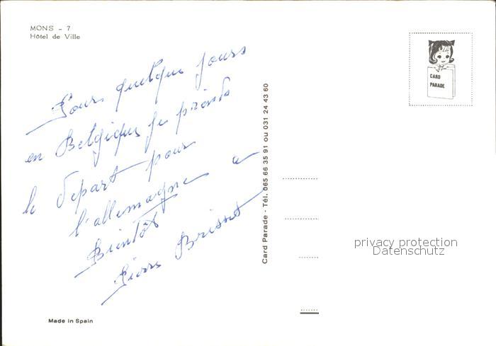 72328535 Mons Hainaut Hotel de Ville postalisch nicht gelaufen Erhaltung siehe scans KatCode: 11070053000441