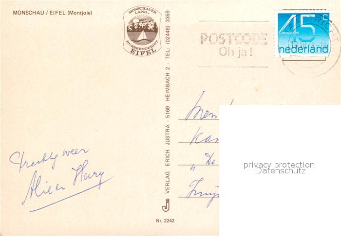 72941352 alte Postkarte Monschau postalisch gelaufen Erhaltung siehe scans [PaolaD17] KatCode: 11110005354020