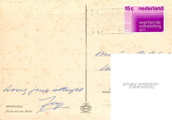 72942919 alte Postkarte Monschau Blick auf die Stadt postalisch gelaufen Erhaltung siehe scans [FriedD77] KatCode: 11110005354020