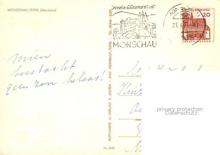 73314523 alte Postkarte Monschau Fliegeraufnahme postalisch gelaufen Erhaltung siehe scans [LiesaD40] KatCode: 11110005354020