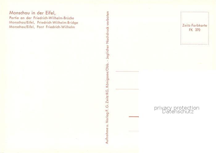 73269135 Monschau Friedrich-Wilhelm-Bruecke postalisch nicht gelaufen Erhaltung siehe scans [PaolaD17] KatCode: 11110005354020