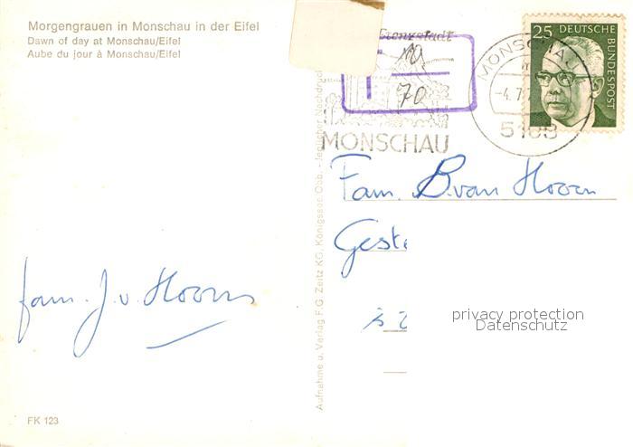 72936540 alte Postkarte Monschau im Morgengrauen postalisch gelaufen Erhaltung siehe scans [FriedD77] KatCode: 11110005354020