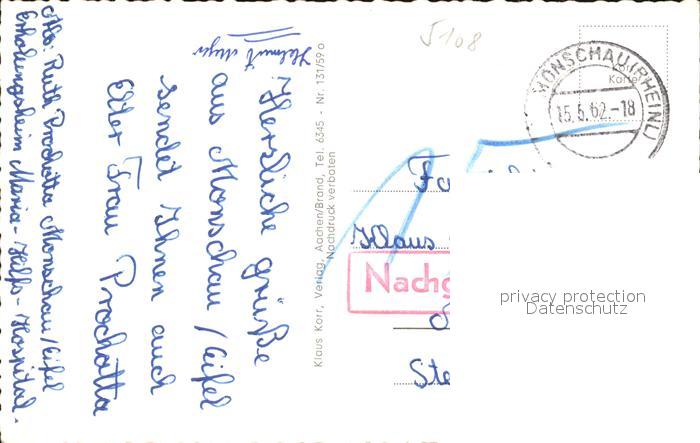72451572 alte Postkarte Monschau Montjoie NRW postalisch gelaufen Erhaltung siehe scans KatCode: 11110005354020