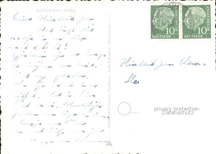 72285288 alte Postkarte Monschau Montjoie NRW postalisch gelaufen Erhaltung siehe scans KatCode: 11110005354020