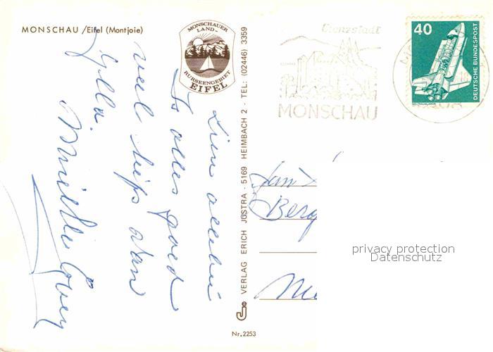 72883809 alte Postkarte Monschau Montjoie NRW postalisch gelaufen Erhaltung siehe scans [LiesaD40] KatCode: 11110005354020