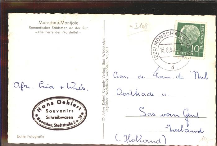 41493433 Monschau Montjoie NRW Alte Haeuser am Laufenbach postalisch nicht gelaufen Erhaltung siehe scans Alte Ansichtskarte Postkarte hz_W Katcode 11110005354020