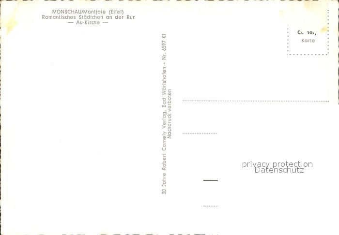 72174945 Monschau Montjoie NRW Altstadt im Winter Au-Kirche rauchende Schornsteine postalisch nicht gelaufen Erhaltung siehe scans KatCode: 11110005354020