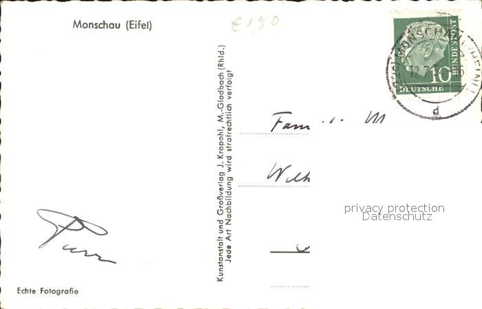 72477685 alte Postkarte Monschau Montjoie NRW Altstadt postalisch gelaufen Erhaltung siehe scans KatCode: 11110005354020