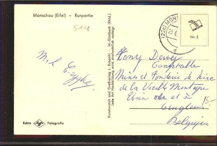 41493484 Monschau Montjoie NRW Am Laufenbach postalisch gelaufen Erhaltung siehe scans Alte Ansichtskarte Postkarte alte Postkarte hz_W Katcode 11110005354020
