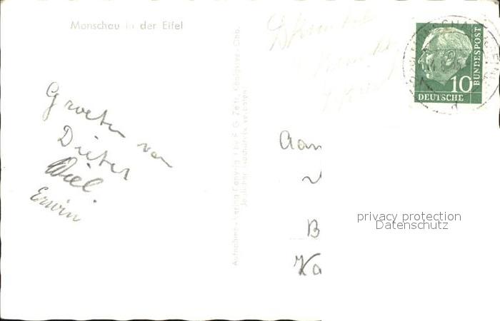 72446583 alte Postkarte Monschau Montjoie NRW Blick auf die Altstadt postalisch gelaufen Erhaltung siehe scans KatCode: 11110005354020