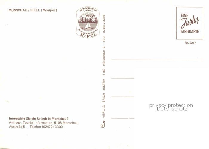 72917683 Monschau Montjoie NRW Blick ueber die Stadt Justra Karte Nr 2217 postalisch nicht gelaufen Erhaltung siehe scans [FriedD77] KatCode: 11110005354020