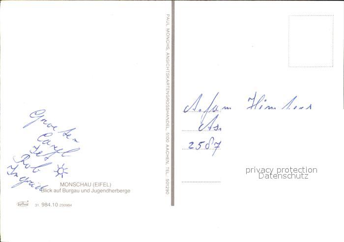 72614175 Monschau Montjoie NRW Burgau Jugendherberge postalisch nicht gelaufen Erhaltung siehe scans [NatalD47] KatCode: 11110005354020