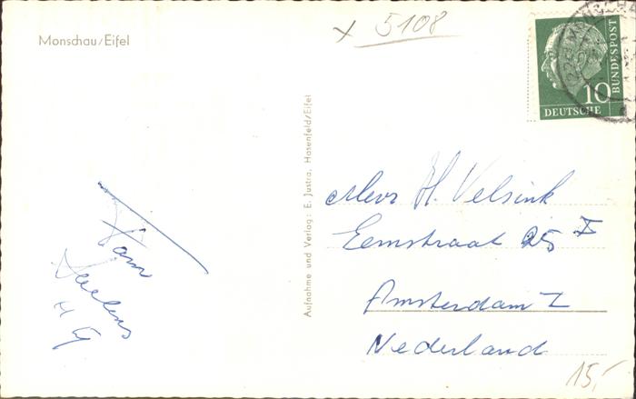 41493488 Monschau Montjoie NRW Dorfpartie postalisch gelaufen Erhaltung siehe scans Alte Ansichtskarte Postkarte alte Postkarte hz_W Katcode 11110005354020
