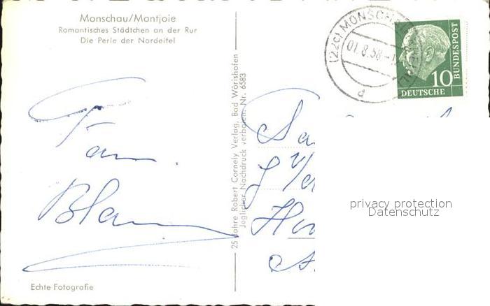 72402797 alte Postkarte Monschau Montjoie NRW Fachwerkhaeuser Kirchstrasse postalisch gelaufen Erhaltung siehe scans KatCode: 11110005354020