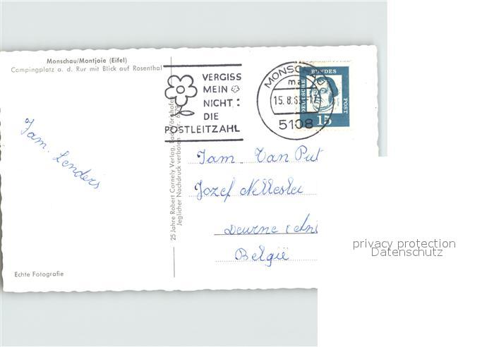 72389948 alte Postkarte Monschau Montjoie NRW Fliegeraufnahme postalisch gelaufen Erhaltung siehe scans KatCode: 11110005354020