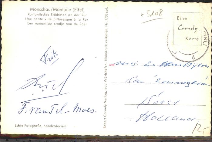 41493396 Monschau Montjoie NRW Friedrich Wilhelm Bruecke Rur postalisch gelaufen Erhaltung siehe scans Alte Ansichtskarte Postkarte alte Postkarte hz_W Katcode 11110005354020