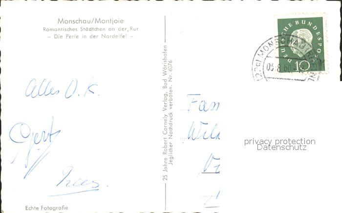 72165437 alte Postkarte Monschau Montjoie NRW Friedrich Wilhelm Bruecke postalisch gelaufen Erhaltung siehe scans KatCode: 11110005354020