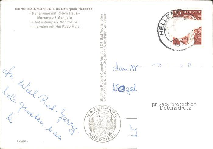 72447104 alte Postkarte Monschau Montjoie NRW Haeuserpartie am Laufenbach postalisch gelaufen Erhaltung siehe scans KatCode: 11110005354020