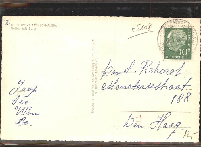 41493587 Monschau Montjoie NRW Haller mit Burg postalisch gelaufen Erhaltung siehe scans Alte Ansichtskarte Postkarte alte Postkarte hz_W Katcode 11110005354020