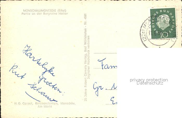 72434910 alte Postkarte Monschau Montjoie NRW Haller postalisch gelaufen Erhaltung siehe scans KatCode: 11110005354020