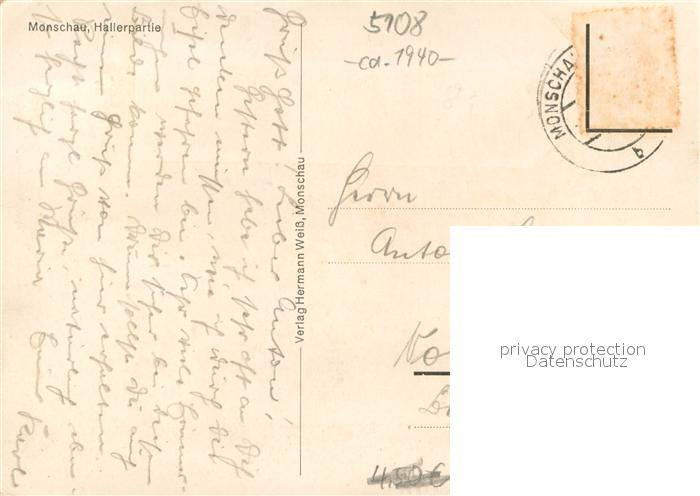 33702804 Monschau Montjoie NRW Hallerpartie Burgruine postalisch gelaufen Erhaltung siehe scans [WerneD78] alte Postkarte Wern Katcode 11110005354020