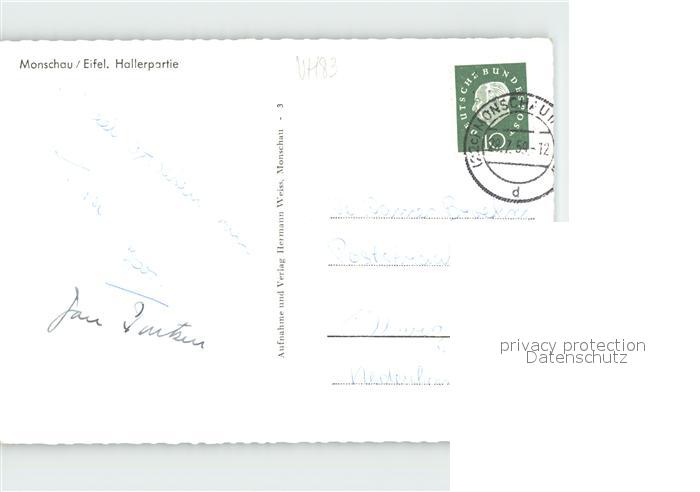 72181362 alte Postkarte Monschau Montjoie NRW Hallerpartie postalisch gelaufen Erhaltung siehe scans KatCode: 11110005354020