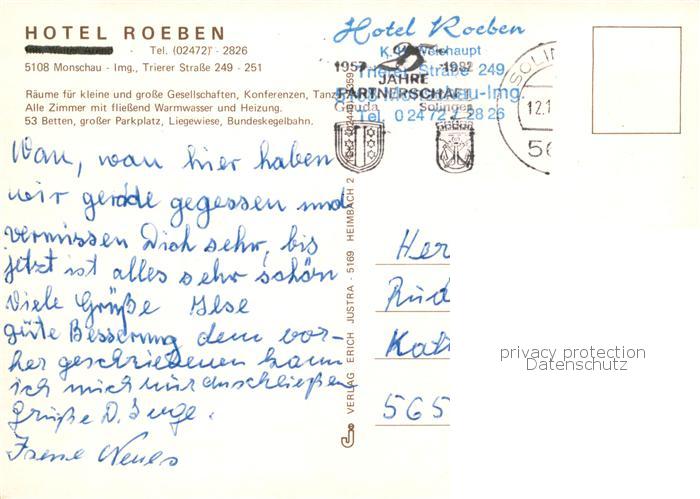 73845085 Monschau Montjoie NRW Hotel Roeben Gastraeume postalisch nicht gelaufen Erhaltung siehe scans [WerneD78] Wern Katcode 11110005354020