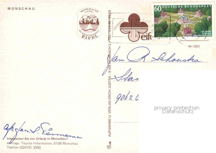 72783443 alte Postkarte Monschau Montjoie NRW Hotel Rotes Haus Rurpartie postalisch gelaufen Erhaltung siehe scans [WerneD78] KatCode: 11110005354020