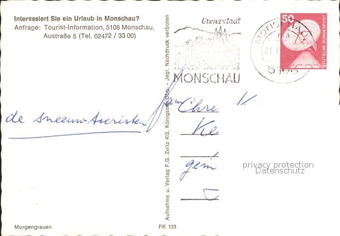 72304150 alte Postkarte Monschau Montjoie NRW Kirchenpartie postalisch gelaufen Erhaltung siehe scans KatCode: 11110005354020